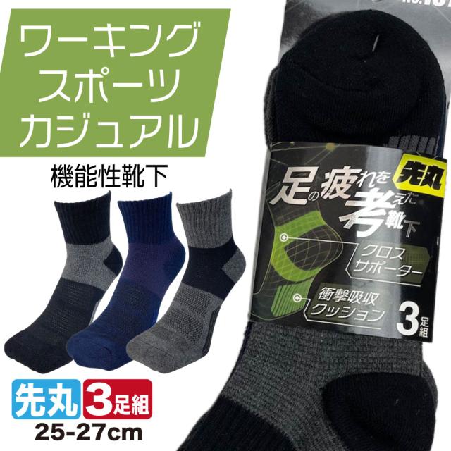 靴下 メンズ くるぶし 3足セット 足の疲れを考えた セミショート丈 25cm-27cm スポーツ ランニング 富士手袋