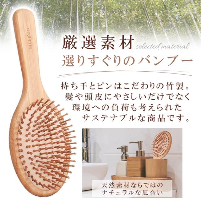 ヘアブラシ クッションブラシ 竹製 マッサージ バンブーブラシ 頭皮マッサージ ブラッシング ブラシ コーム 艶髪 くし クシ 櫛 メンズ レディース 女性 男性 高級 ヘアケア ブロー ウッドピン クッション 絡まない ストレート くせ毛 プレゼント ギフト