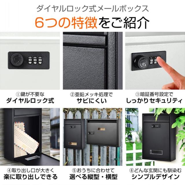 新生活 メールボックス ダイヤルロック式 ポスト 壁掛け ダイヤル式 郵便ポスト 暗証番号 玄関 縦型 薄型 北欧 横型 ny579