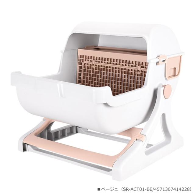 コンパクトながらも大容量のため、子猫から成猫まで使用が可能です。また、シンプルな色合いでインテリアにも馴染みやすいデザインになっております。トイレ本体を傾けるだけでお手入れ、後始末が完了!手を汚さずに簡単に掃除が出来ます。工具などの事前準備不要、女性でも簡単に組み立てが出来ます。カラーバリエーションは、ベージュ(SR-ACT01-BE/4571307414228)グレー(SR-ACT01-GY/4571307414518)です。
