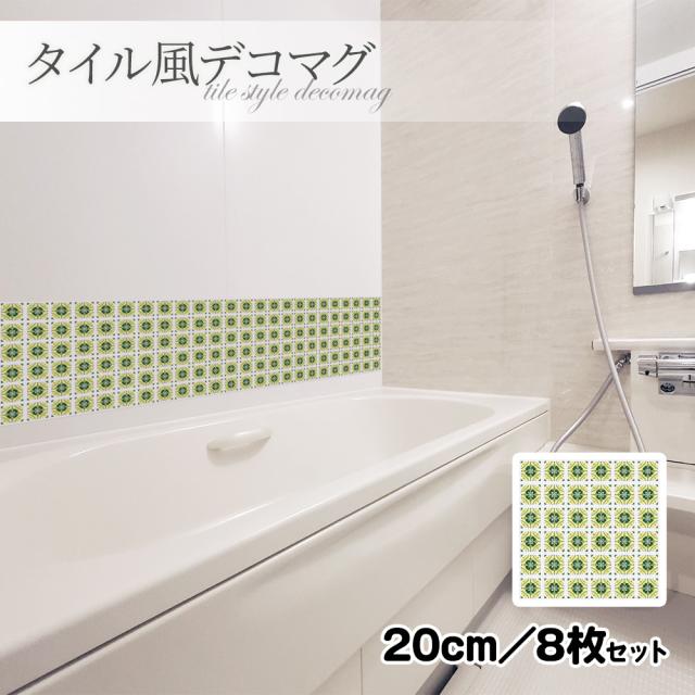 タイル風デコマグ デザインタイル 緑 20cm/8枚セット ハンドメイド お風呂・玄関ドア・冷蔵庫などに ゆうパケット対応210円〜