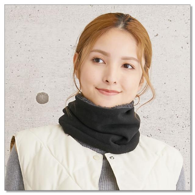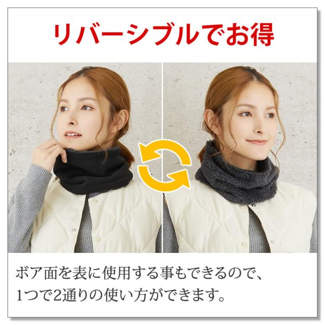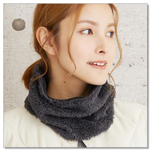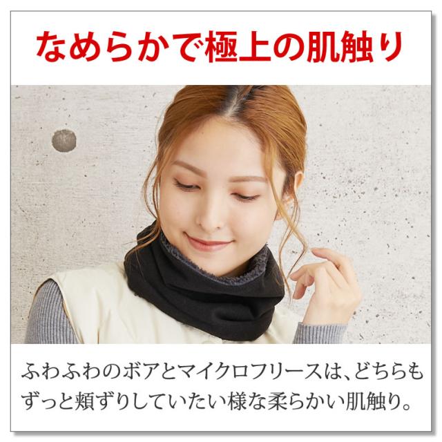 ふわふわのボアとマイクロフリースが、まるで毛布のように優しく首元を暖めてくれます。