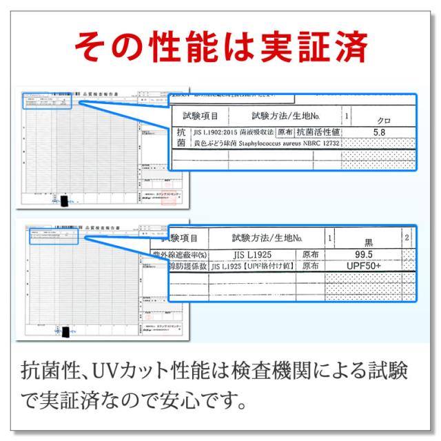 抗菌性能、UVカット性能は検査機関による試験で実証済です。