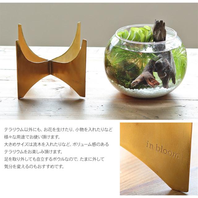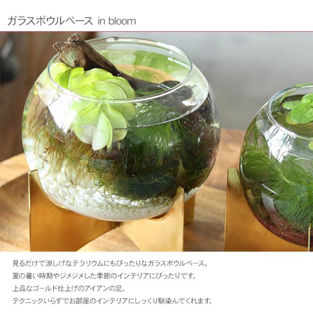商品説明:見るだけで涼しげなテラリウムにもぴったりなガラスボウルベース。