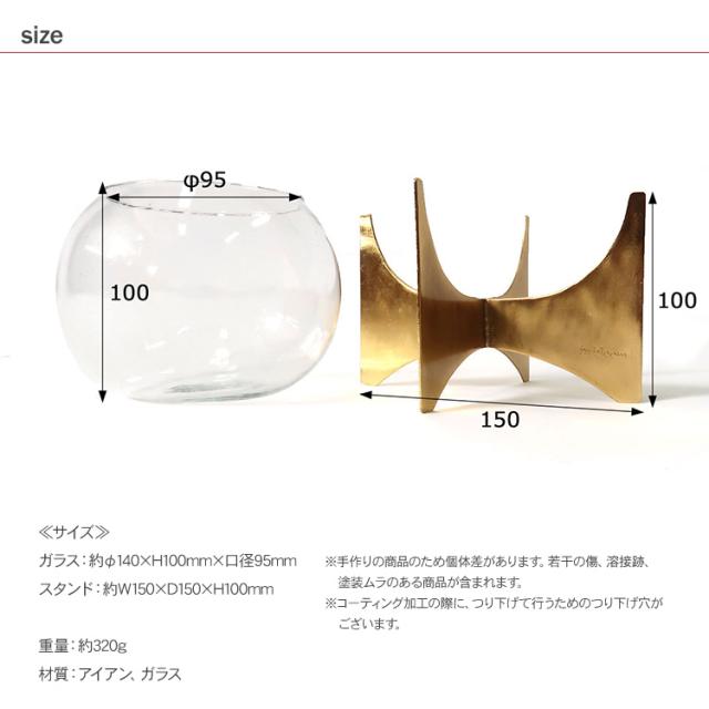サイズ:ガラス:約φ140×H100mm×口径95mm、スタンド:約W150×D150×H100mm