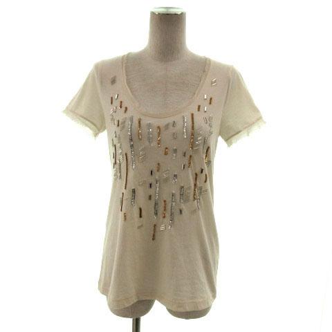 【中古】チェスティ Chesty カットソー Uネック 半袖 フリンジ ビーズ スパンコール ベージュ F レディース