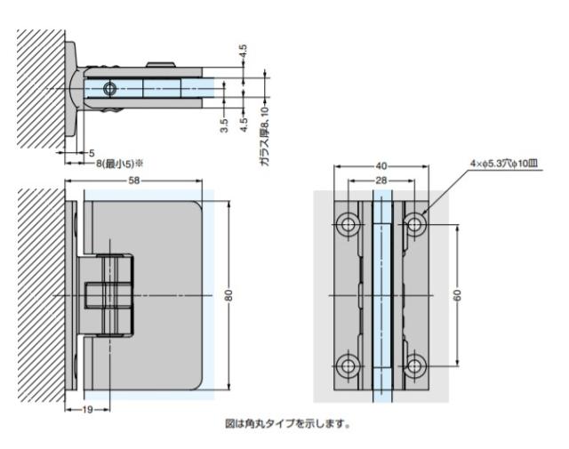 ●シャワーブースなどの水回りでご使用いただけます。 ●ブラック色が新しく加わりました。 ●ゼロポジション(閉止位置)調整機能付きです。 ●扉の自動閉止機能は、約15度から働きます。 ●約90度で扉を簡易保持します。 ●設置場所に合わせて別売品のガラスエッジプロテクターをご使用ください。 【注意】 ●ガラスサイズは耐荷重を優先して決めてください。 ●扉は約90度では止まらないため、これ以上開かないように戸当りを別途設けてください。 【付属品】 ●ねじキャップ ●セッティングブロック(1mm×1、2mm×1、3mm×1) 【別売品】 ●丁番取付ねじ 品番にRSGがつく製品は、羽根の角が四角いタイプです。 【材料】 黄銅 ※黄銅(JIS表記名)は、「真鍮」とも呼ばれています。 【仕上】 クロムめっき 【サイズ】 扉幅/2ヶ:800以下 扉幅/3ヶ:900以下 扉高さ/2ヶ :2200以下 扉高さ/3ヶ:2400以下 ガラス厚:8、10 【耐荷重N】392 /2ヶ 490 /3ヶ 【耐荷重kgf】40 /2ヶ 50 /3ヶ 【注文コード】170-021-838 【品番】M8500R-14 旧品番:M8500R 角部形状:角丸 [ 輸入 ] このマークの製品は輸入品のため「寸法・色調・作動感のばらつき」や、予告なく仕様変更等を行う場合があります。 製品内容は、部品としての品質範囲です。この部品を使用した最終製品の機能・性能・安全を保証するものではありません。 ※画像はイメージです。 ※パッケージ、仕様、品番などの変更が予告なく変更される場合が御座います。 カテゴリー |