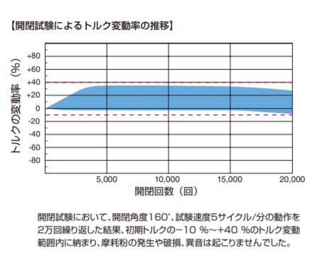 経年変化や温度・湿度などによるトルク低下を考慮し、出荷時のトルクを高めに設定しています。