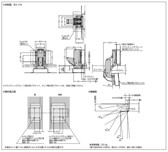 ※丁番本体とマウンティングプレート(別売品)の組み合わせで使用します。