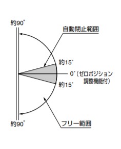 扉は約90度では止まらないため、これ以上開かないように戸当りを別途設けてください。