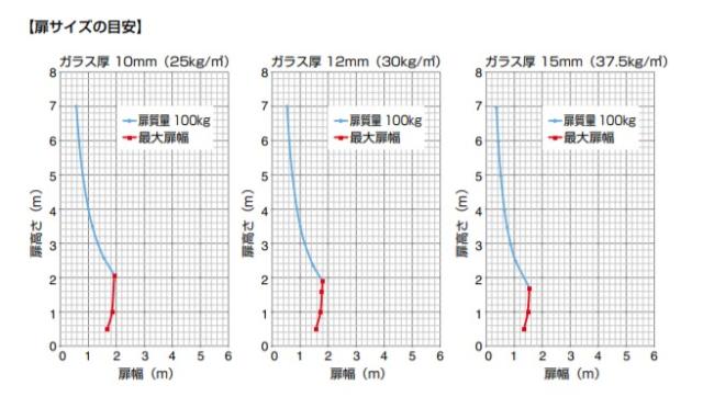 扉の比重や大きさ、形によって最大耐荷重まで使用できない場合がありますので、ご使用前に扉サイズの目安をご確認ください。