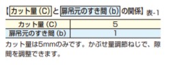 【カット量(C)と扉吊元のすき間(b)の関係】表-1