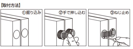 本体のねじを回し、端部をひろげることにより穴にしっかり止めることができます。