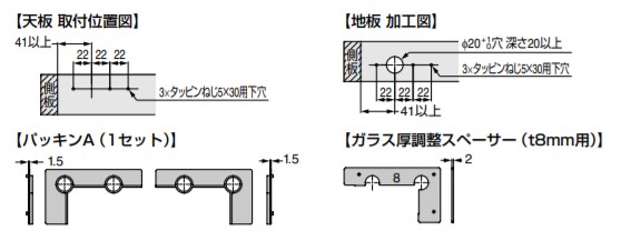 ガラス厚8mmの場合、ガラス厚調整スペーサーを使用してください。