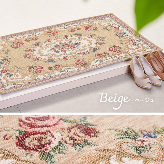 ●ゴブラン織りの優美な花柄デザイン、刺繍のような柄が特徴のゴブラン織りの玄関マット。