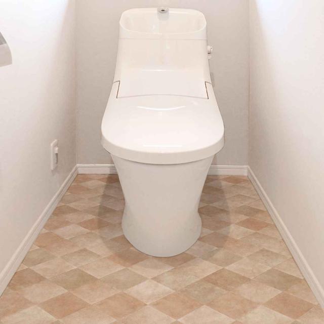 トイレの床に貼ってはがせて模様替えできる
