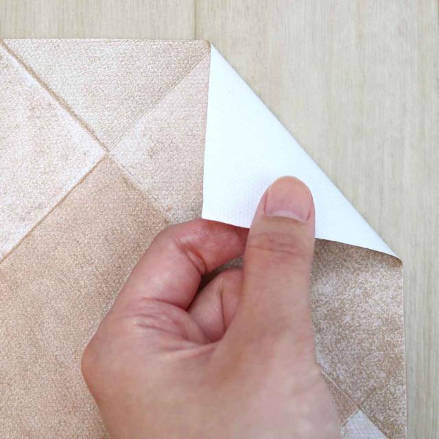 シートは貼りやすい4分割にカット済みです。床にピタッと吸着するので動かず、ズレずに安心です。のりを使わないシートなので、はがしてもベタベタするノリ跡などは残らず、綺麗にはがせます。はがす時は端からめくるだけなので簡単です。賃貸住宅でも安心してご使用いただけます。