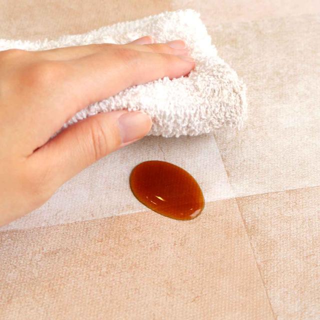汚れに強く、床の表面を汚れやキズから守ります。防水加工が施されており、汚れてもサッと一拭きでお手入れラクラクです。汚れ、キズ隠し、予防にもなります。「抗菌・消臭加工付き」で衛生的です。