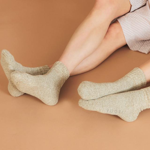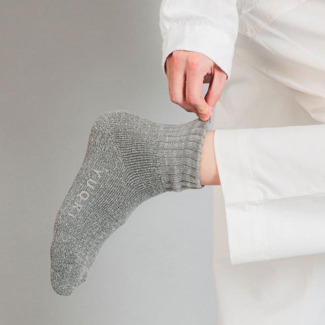 まるで洗い立てのタオルの上を歩いているかのようなふんわり感が特徴のYUQRIのソックスから、履き心地や色彩、素材感にこだわった「emotion」コレクションのモデルが登場。超希少な旧式低速編機でゆっくりと編み立てられた、心地よいふんわりパイルは、洗いこんでもへたれにくく、風合いが増していくのが特徴です。履き口は、熟練の職人が手仕事でひとつひとつ丁寧に2重リブに仕上げており、履いていてもずれず、リブ跡が足首につかない究極フィットを実現しています。また、素材には、抗菌防臭・消臭・制菌を兼ね備えたYUQRI PROTECTIONを配合。高次元の抗菌防臭、消臭力を配合している事に加え、菌の増殖を抑制する制菌機能も付与しているため、履いて5分で70%、30分で99%の消臭率を誇り、50回洗濯しても効果は下がらない等持続性にも優れています。繊維評価技術協議会が繊維の機能加工・素材の性能と安全性を認証するSEKマークを取得した確かなクオリティも魅力です。