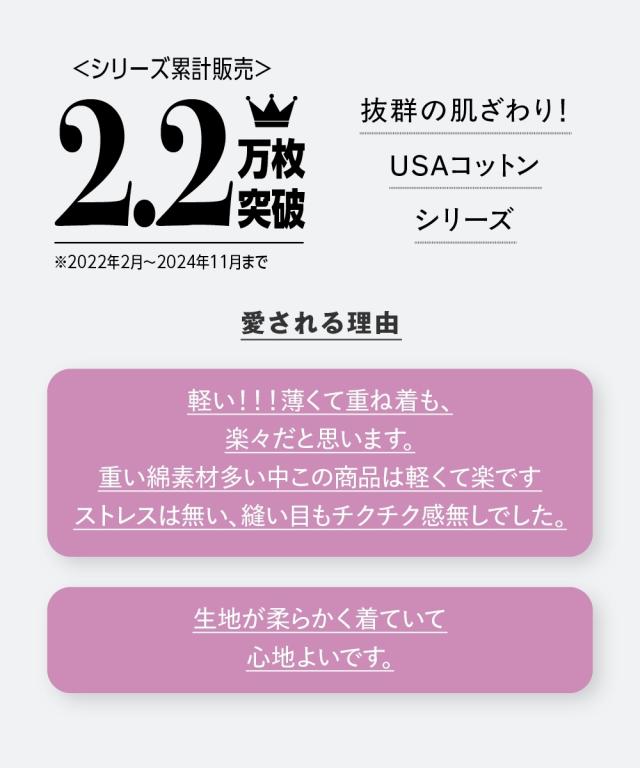 品質=綿100%(リブ除く) デザインの特性上ゆったりとしたシルエットとなっております。 透け感:なし(淡色は透ける恐れがあるためベージュ系インナーの着用をおすすめします。) 伸縮性:あり 生地の厚み:普通 光沢感:なし 季節:春・秋向き シルエット:ゆったり ※接触冷感本品は加工ではなく糸の持つ素材特性によるナチュラルな接触冷感がございます。そのため、1年を通して肌あたりよくご着用いただけます。 入荷時期によりネーム・下げ札の仕様は多少、異なります。 原産国:バングラデシュ製 備考:単位:cm ※サイズの誤差は多少発生します。ご了承ください。 ※仕立てサイズとは、実際に商品を測った時のサイズのことです。
