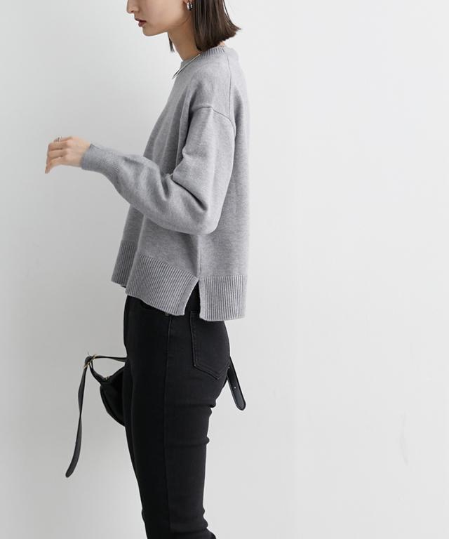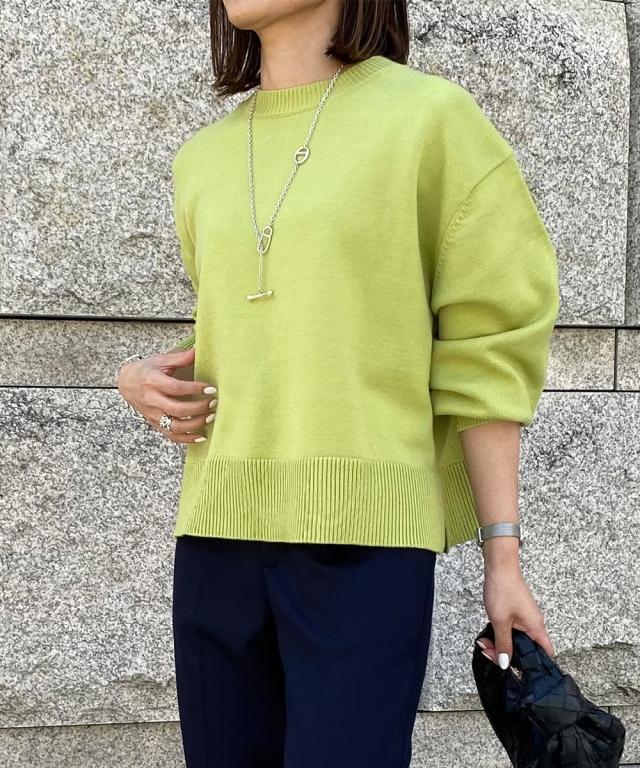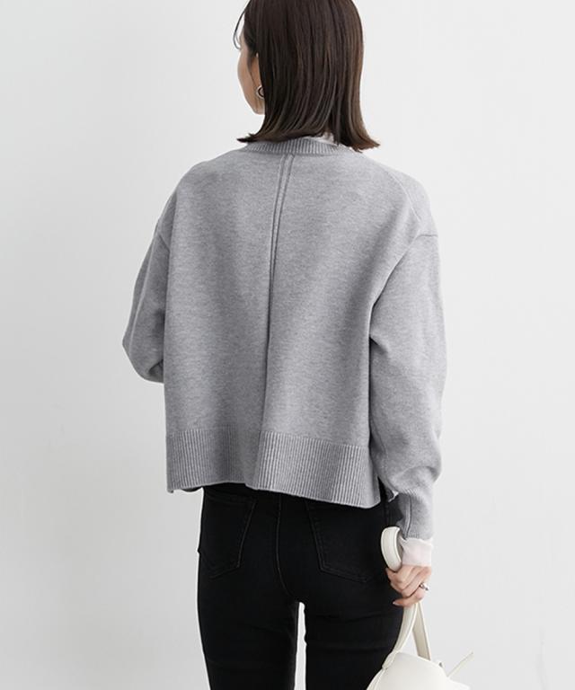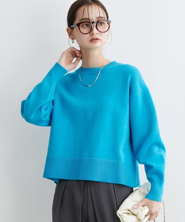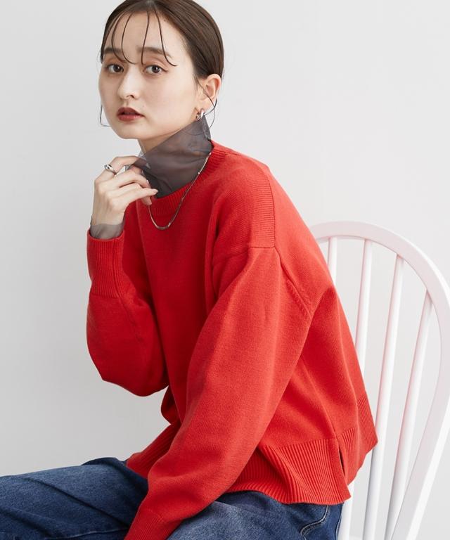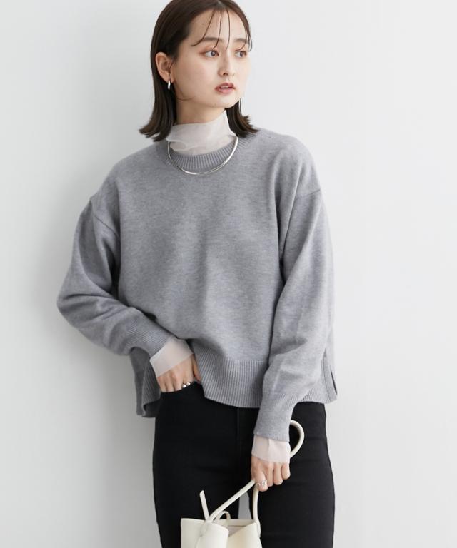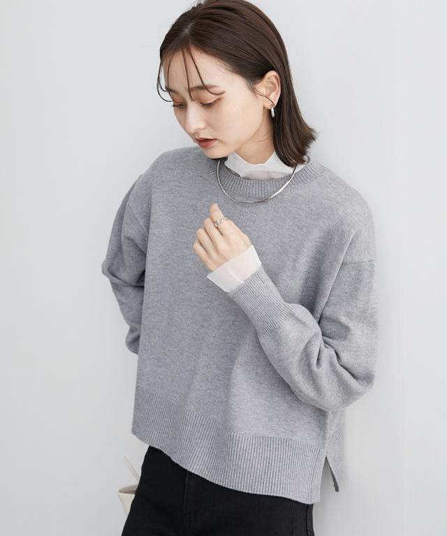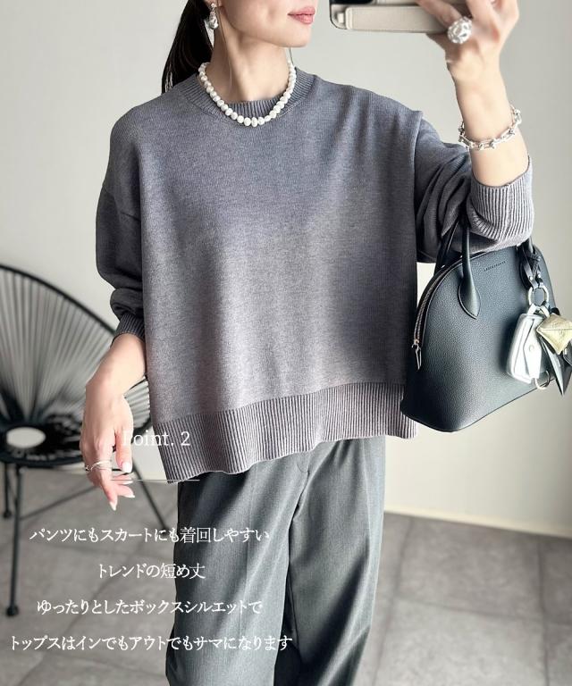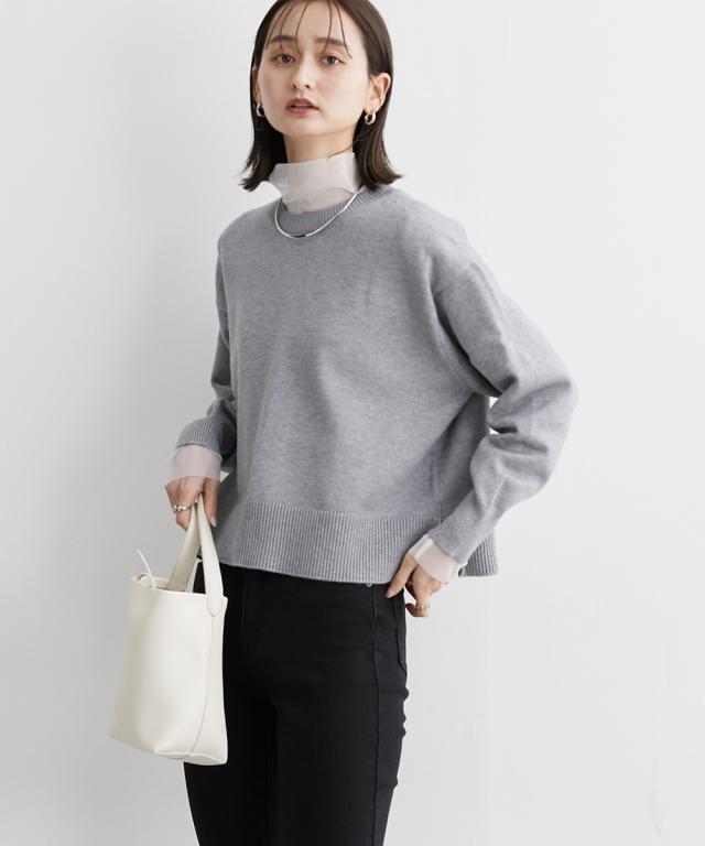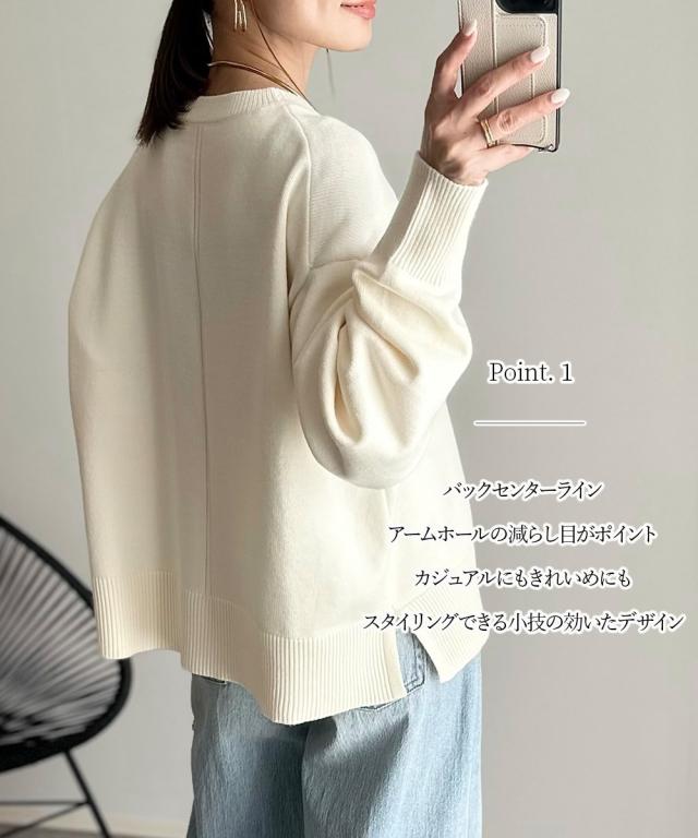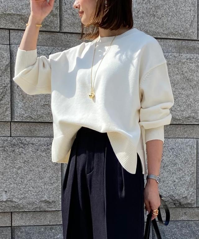 [keyword] レディースファッション 標準サイズ 普通サイズ ふつう丈 おしゃれ 長袖 丸首 クルーネック あったか 冬 防寒 ニット 無地 無地調 柄 かわいい きれいめ 通勤 ビジネス 着回し オフィスに最適 オフィス 仕事 [comment] 【mako×ニッセンSpecialcollaborationitem】モダンで上品なスタイリングが得意なインフルエンサーmakoさんとのコラボ商品☆彡どんなアイテムにしようか、どんな素材・カラーにしようか、と打ち合わせをしながら一緒に作り上げました。こだわり3ポイントデザインバックセンターラインや、アームホール部分の減らし目がポイント。カジュアルにもきれいめにもスタイリングできるシンプルだけど小技の効いたデザインに仕上げました。シルエット今季のトレンドで、かつパンツにもスカートにも着回しやすい少し短めの着丈設定にしました。ゆったりとしたボックスシルエットなので、トップスをインしてもアウトでもサマになります。素材上品で高見えする、もっちりとしたなめらかなニット素材をセレクト。ほどよくしっかりとした肉感と洗練さを醸し出すミドルゲージの7Gで編み立てました。