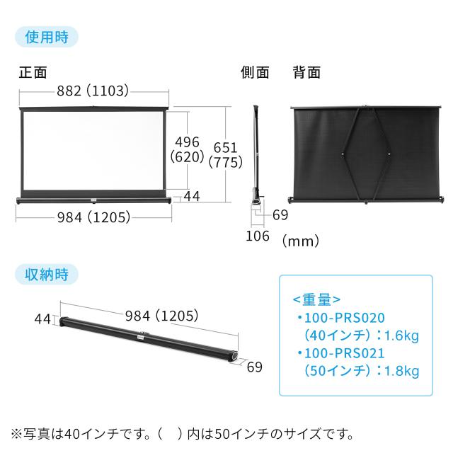 プロジェクタースクリーン 自立式 床置き型 50インチ 携帯型 折りたたみ 16:9[100-PRS021]