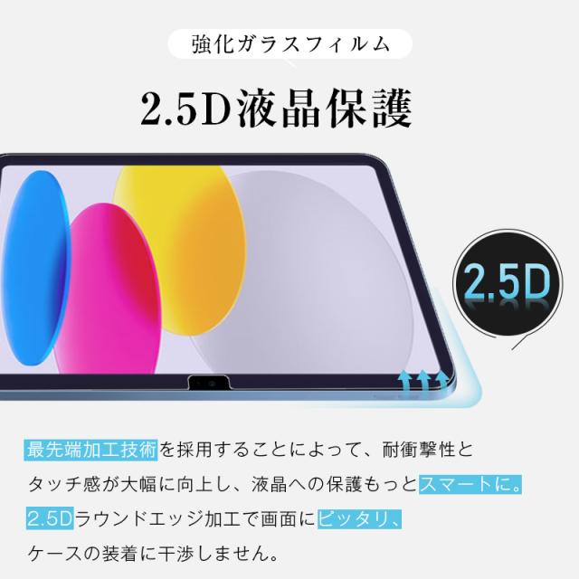 iPad 第10世代 10.9インチ 強化ガラス保護フィルム ブルーライトカット 10.9インチiPad(A16) iPadフィルム 2.5D 液晶保護フィルム ガラスシート ガラスフィルム 画面保護フィルム スクリーンフィルム ケース対応