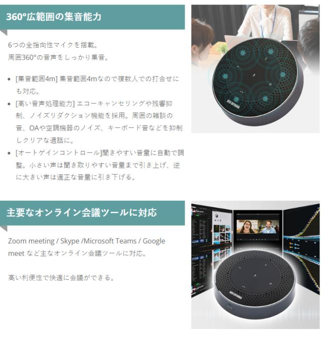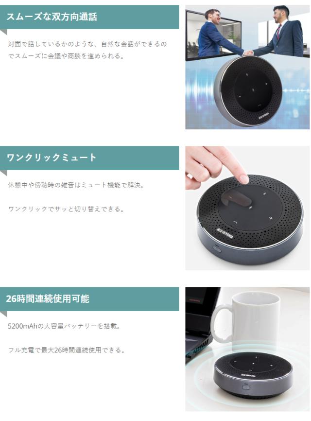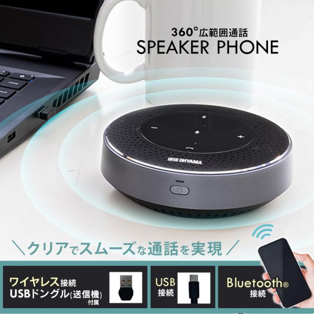 スピーカーフォン 会議用マイク スピーカー ワイヤレス アイリスオーヤマ アイリス CMS-201-B マイク マイク内蔵 テレワーク リモート 在宅 会議 ミーティング 黒 送料無料