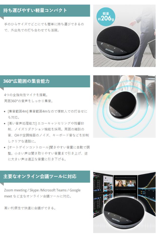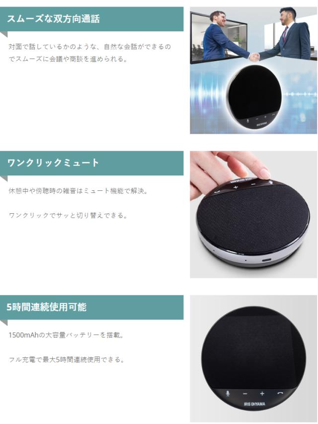 スピーカーフォン 会議用マイク スピーカー ワイヤレス アイリスオーヤマ アイリス CMS-101-B マイク内蔵 テレワーク リモート 在宅 会議 ミーティング 黒 送料無料