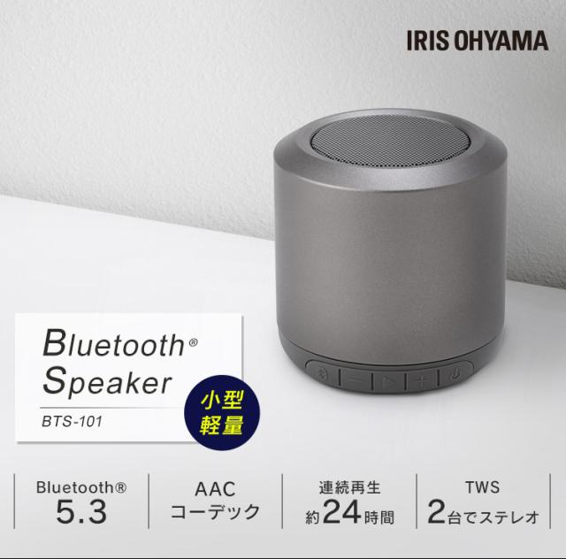 スピーカー Bluetooth Bluetoothスピーカー アイリスオーヤマ ワイヤレス コンパクト 小型 軽量 グレー BTS-101-H 円筒型 モノラルスピーカー 同時ペアリング USB充電 防水なし TWS 送料無料