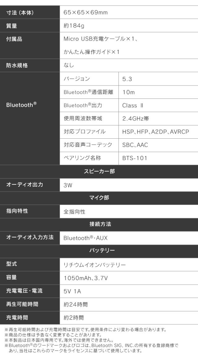 ■付属品:Micro USB充電ケーブル、かんたん操作ガイド