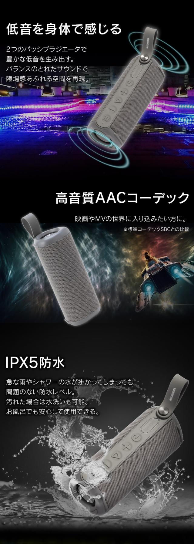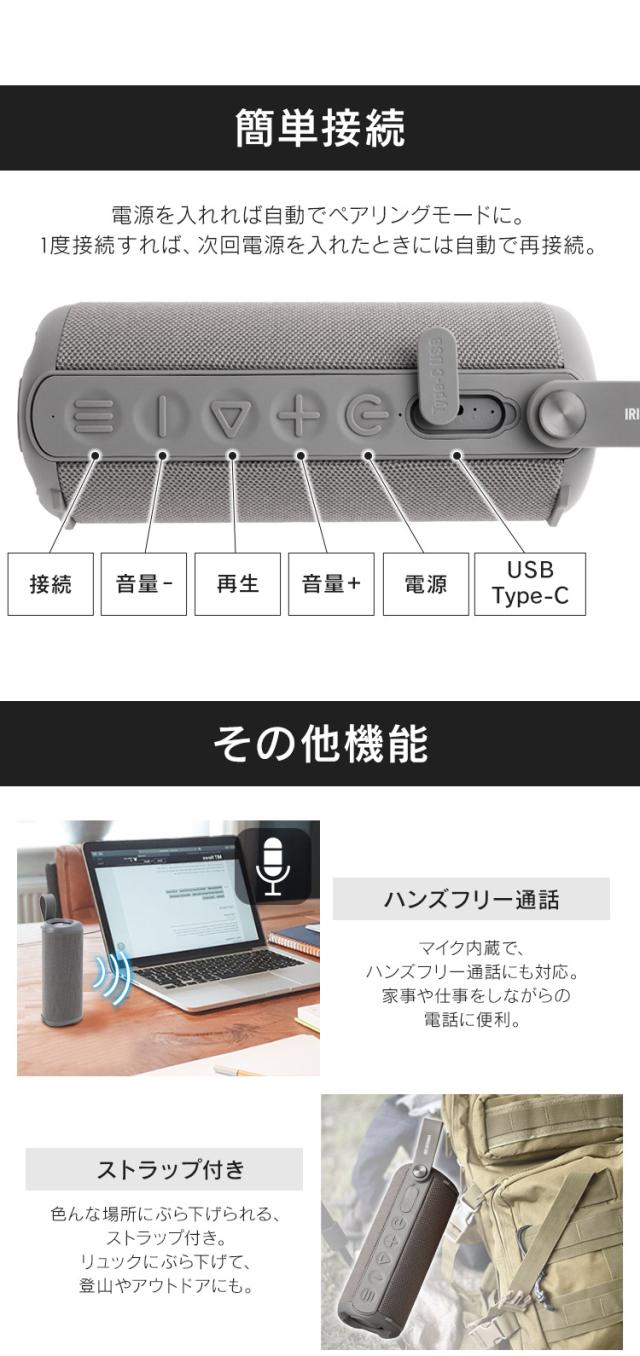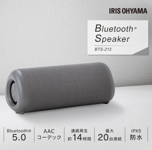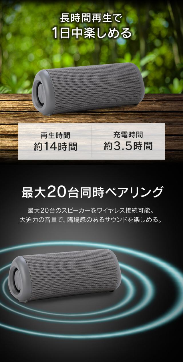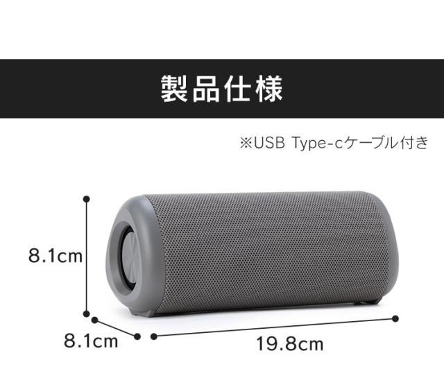スピーカー ワイヤレス 円筒型 Bluetoothスピーカー Bluetooth グレー BTS-213-H ステレオスピーカー コンパクト 長時間再生 USB充電 防水 ミュージック 送料無料