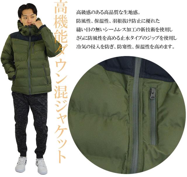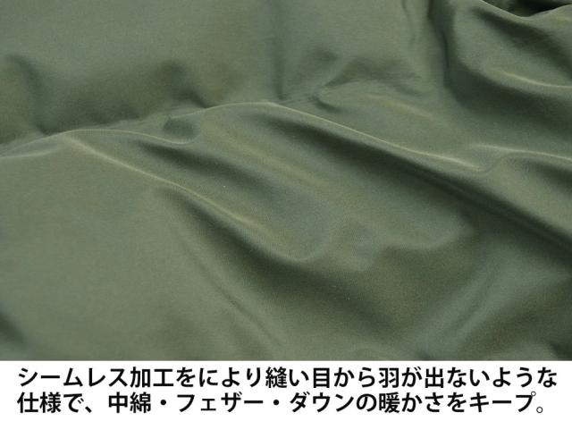 ■防風性、保温性、羽根抜け防止に優れた縫い目の無いシームレス加工の新技術を使用し、高級感のある高品質な生地感か魅力的。