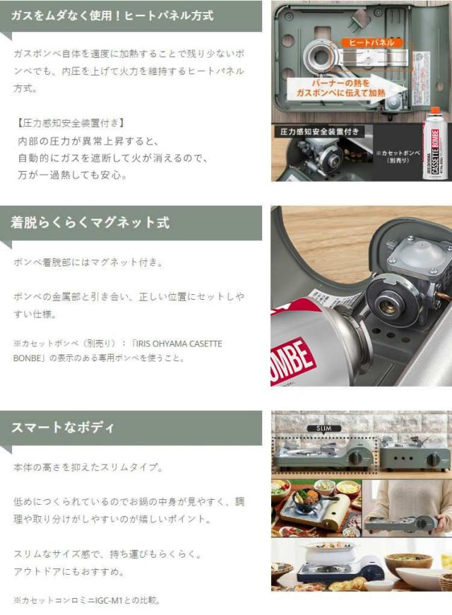 カセットコンロ コンロ 本体 薄型 スタイリッシュ IGC-E1-H 防災 アウトドア 鍋 料理 災害 全3色 テーブルコンロ カセット ベーシックモデル 卓上 アウトドア 調理 カセットガス 災害時 アイリスオーヤマ