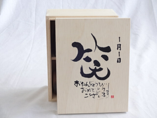 誕生日1月1日セット おたんじょうびおめでとうございます 笑う門には福来たる木箱珈琲マグカップセット(国産備前金彩マグカップと挽き立て特注ハッピーブレンド珈琲豆180g) 陶芸作家 安藤嘉規作×デザイン書道家 榮田 清峰作