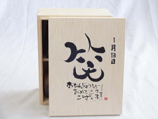 誕生日1月13日セット おたんじょうびおめでとうございます 笑う門には福来たる木箱珈琲マグカップセット(国産備前金彩マグカップと挽き立て特注ハッピーブレンド珈琲豆180g) 陶芸作家 安藤嘉規作×デザイン書道家 榮田 清峰作