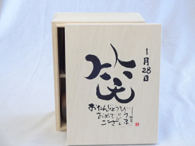誕生日1月28日セット おたんじょうびおめでとうございます 笑う門には福来たる木箱珈琲マグカップセット(国産備前金彩マグカップと挽き立て特注ハッピーブレンド珈琲豆180g) 陶芸作家 安藤嘉規作×デザイン書道家 榮田 清峰作