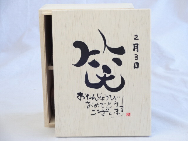 誕生日2月3日セット おたんじょうびおめでとうございます 笑う門には福来たる木箱珈琲マグカップセット(国産備前金彩マグカップと挽き立て特注ハッピーブレンド珈琲豆180g) 陶芸作家 安藤嘉規作×デザイン書道家 榮田 清峰作