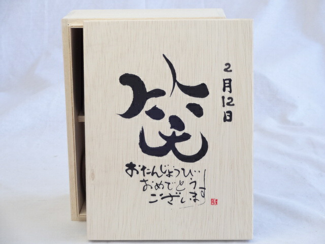 誕生日2月12日セット おたんじょうびおめでとうございます 笑う門には福来たる木箱珈琲マグカップセット(国産備前金彩マグカップと挽き立て特注ハッピーブレンド珈琲豆180g) 陶芸作家 安藤嘉規作×デザイン書道家 榮田 清峰作