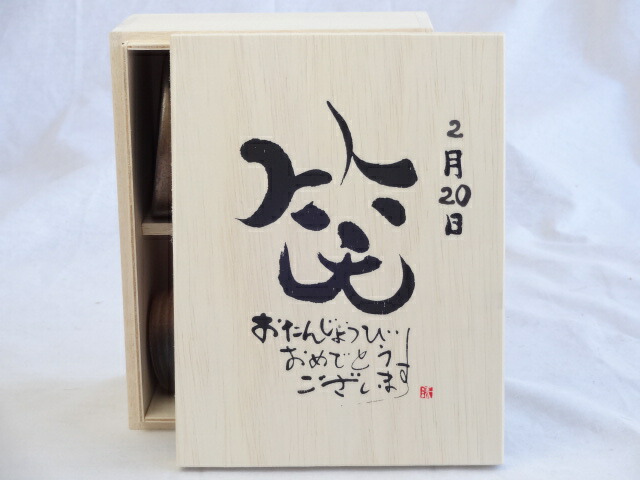 誕生日2月20日セット おたんじょうびおめでとうございます 笑う門には福来たる木箱珈琲マグカップセット(国産備前金彩マグカップと挽き立て特注ハッピーブレンド珈琲豆180g) 陶芸作家 安藤嘉規作×デザイン書道家 榮田 清峰作