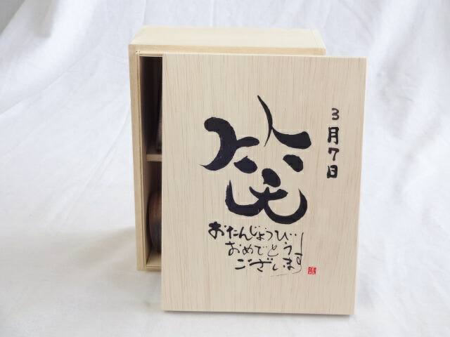 誕生日3月7日セット おたんじょうびおめでとうございます 笑う門には福来たる木箱珈琲マグカップセット(国産備前金彩マグカップと挽き立て特注ハッピーブレンド珈琲豆180g) 陶芸作家 安藤嘉規作×デザイン書道家 榮田 清峰作