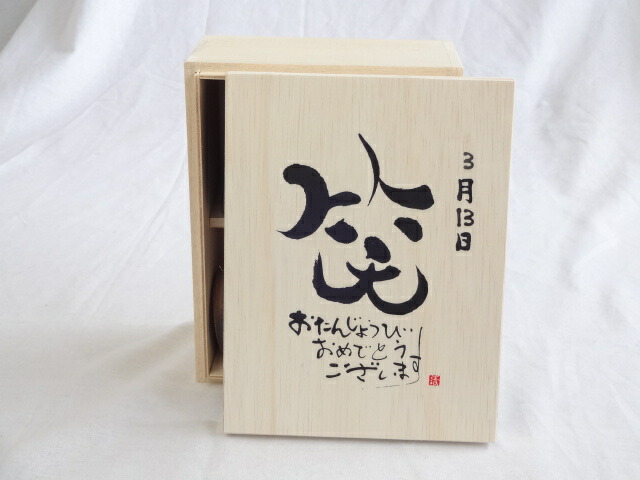 誕生日3月13日セット おたんじょうびおめでとうございます 笑う門には福来たる木箱珈琲マグカップセット(国産備前金彩マグカップと挽き立て特注ハッピーブレンド珈琲豆180g) 陶芸作家 安藤嘉規作×デザイン書道家 榮田 清峰作