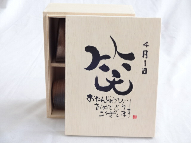 誕生日4月1日セット おたんじょうびおめでとうございます 笑う門には福来たる木箱珈琲マグカップセット(国産備前金彩マグカップと挽き立て特注ハッピーブレンド珈琲豆180g) 陶芸作家 安藤嘉規作×デザイン書道家 榮田 清峰作