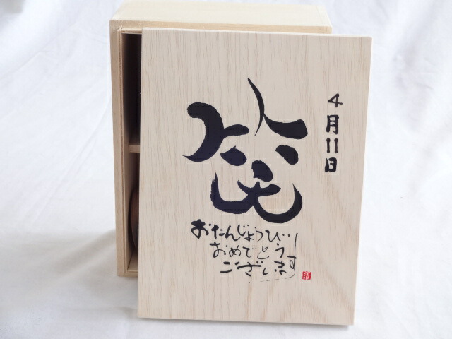 誕生日4月11日セット おたんじょうびおめでとうございます 笑う門には福来たる木箱珈琲マグカップセット(国産備前金彩マグカップと挽き立て特注ハッピーブレンド珈琲豆180g) 陶芸作家 安藤嘉規作×デザイン書道家 榮田 清峰作
