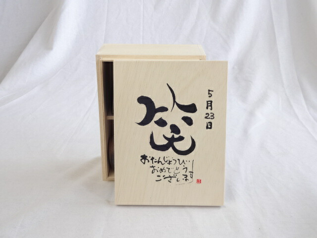 誕生日5月23日セット おたんじょうびおめでとうございます 笑う門には福来たる木箱珈琲マグカップセット(国産備前金彩マグカップと挽き立て特注ハッピーブレンド珈琲豆180g) 陶芸作家 安藤嘉規作×デザイン書道家 榮田 清峰作