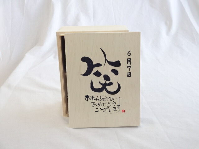 誕生日6月7日セット おたんじょうびおめでとうございます 笑う門には福来たる木箱珈琲マグカップセット(国産備前金彩マグカップと挽き立て特注ハッピーブレンド珈琲豆180g) 陶芸作家 安藤嘉規作×デザイン書道家 榮田 清峰作