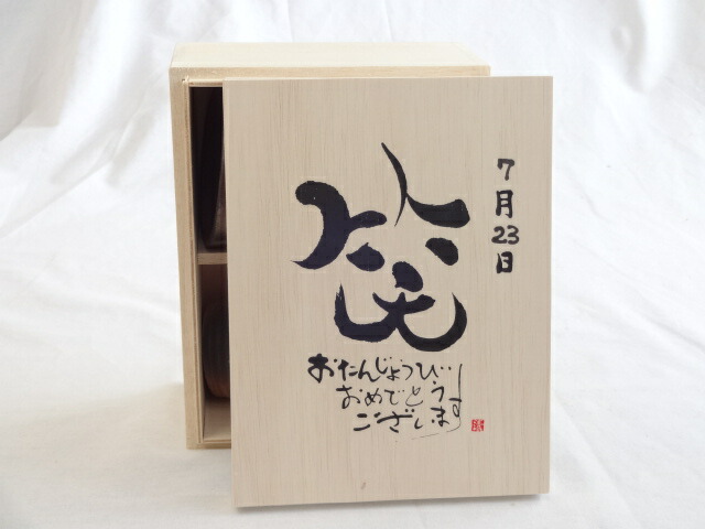 誕生日7月23日セット おたんじょうびおめでとうございます 笑う門には福来たる木箱珈琲マグカップセット(国産備前金彩マグカップと挽き立て特注ハッピーブレンド珈琲豆180g) 陶芸作家 安藤嘉規作×デザイン書道家 榮田 清峰作