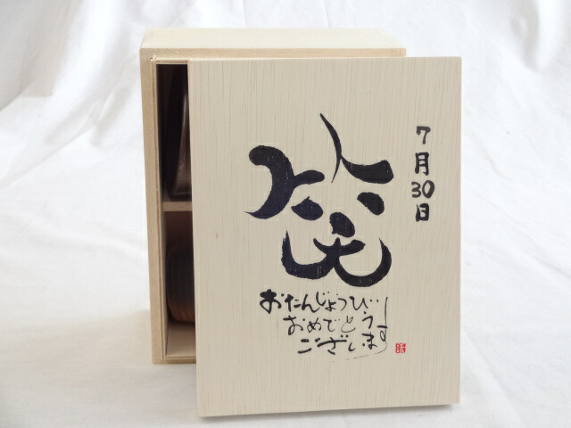 誕生日7月30日セット おたんじょうびおめでとうございます 笑う門には福来たる木箱珈琲マグカップセット(国産備前金彩マグカップと挽き立て特注ハッピーブレンド珈琲豆180g) 陶芸作家 安藤嘉規作×デザイン書道家 榮田 清峰作