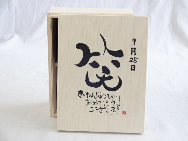 誕生日9月25日セット おたんじょうびおめでとうございます 笑う門には福来たる木箱珈琲マグカップセット(国産備前金彩マグカップと挽き立て特注ハッピーブレンド珈琲豆180g) 陶芸作家 安藤嘉規作×デザイン書道家 榮田 清峰作