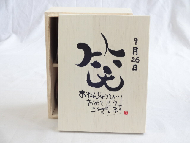 誕生日9月26日セット おたんじょうびおめでとうございます 笑う門には福来たる木箱珈琲マグカップセット(国産備前金彩マグカップと挽き立て特注ハッピーブレンド珈琲豆180g) 陶芸作家 安藤嘉規作×デザイン書道家 榮田 清峰作